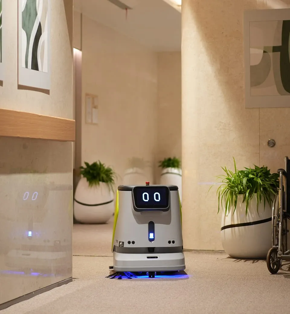 • Halı süpürme ve sert zeminlerde ovma ve toz paspaslama için 4’ü 1 arada çok fonksiyonlu temizlik robotu. • Verimlilik: ~700–1,000㎡/saat. • Özellikler: otomatik şarj, otomatik su dolumu ve boşaltma, asansör kullanımı.