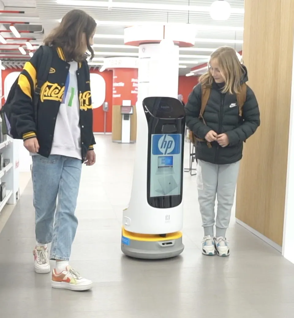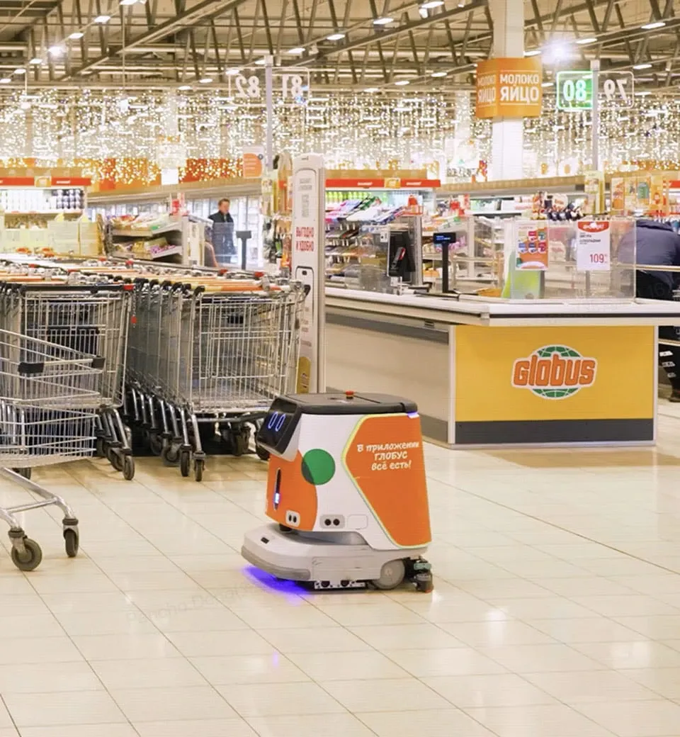 • Çift işlev: Pazarlama + Teslimat. • Kompakt tasarım dar alanlarda rahat gezinir. • 18" ultra-HD, yüksek parlaklık, geniş renk gamı ekran ile senaryo tabanlı reklamlar. • Akıllı sesli yönlendirme ve yol bulma. • Kesintisiz çalışma için otomatik şarj.