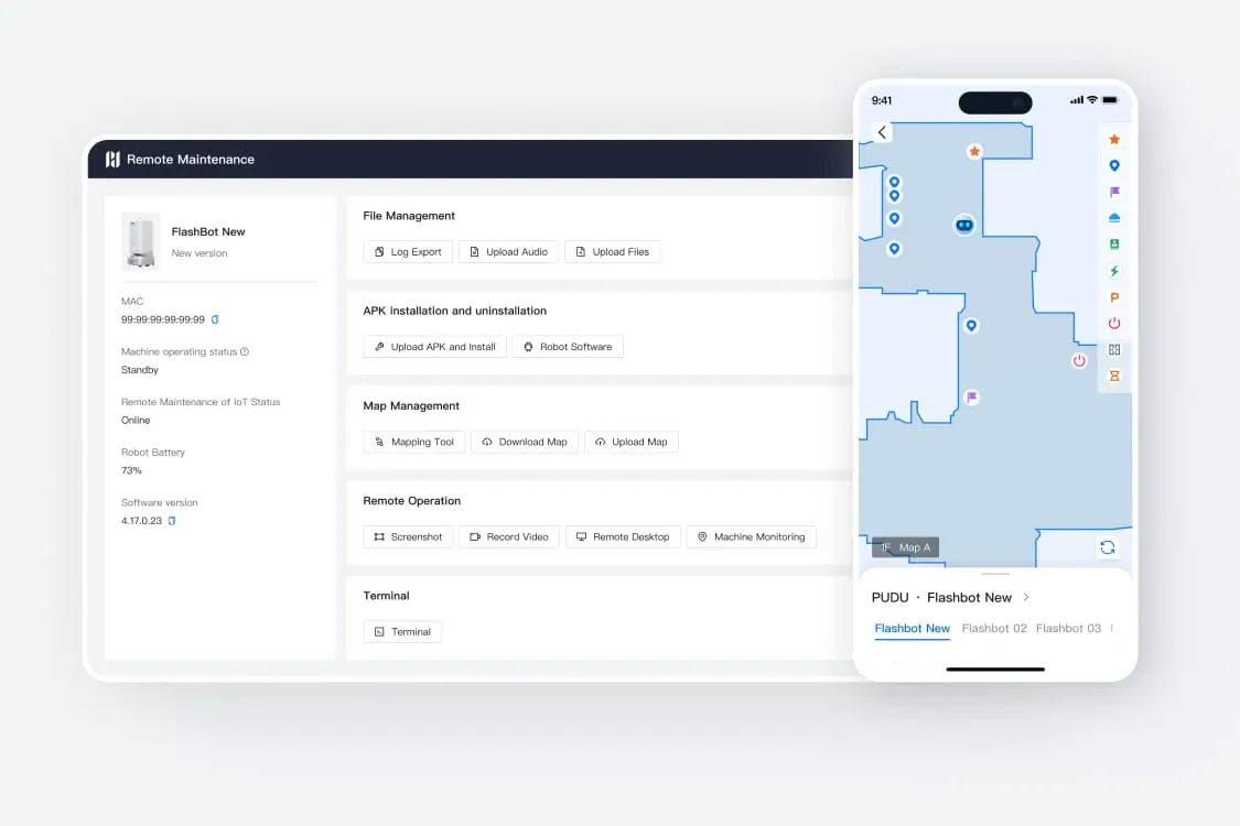 PUDU VSLAM+ navigasyon sistemi, yarı açık otel ortamları için özel olarak tasarlanmıştır. Geleneksel teslimat robotlarının aksine, FlashBot yalnızca oda servisini değil, aynı zamanda bahçe koridorları, spor alanları ve havuz kenarı gibi karmaşık yarı açık alanlarda da sorunsuz bir şekilde hareket eder; olağanüstü bir insan-robot etkileşimi sunar.