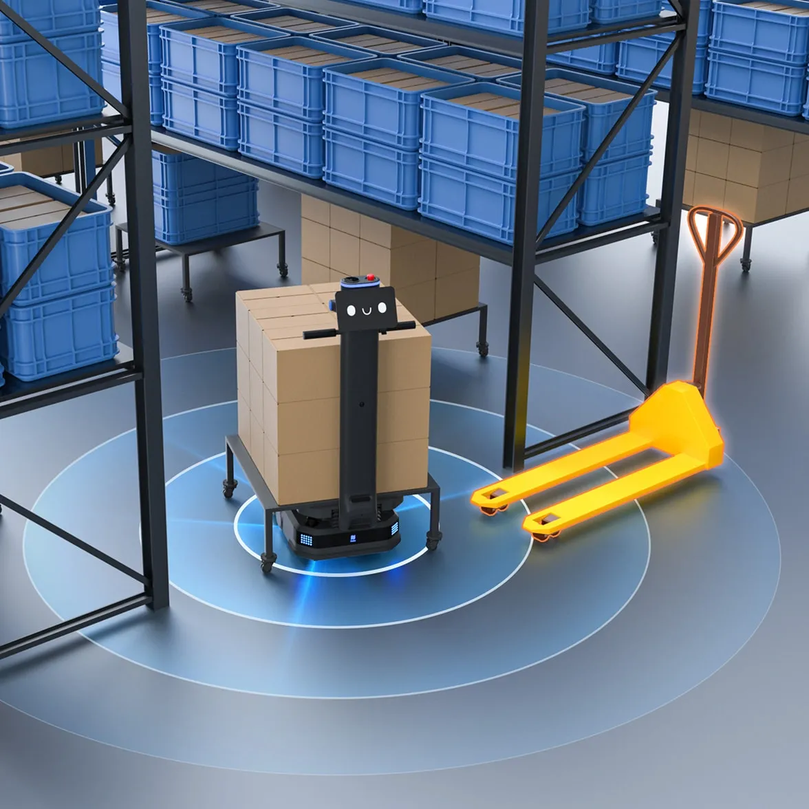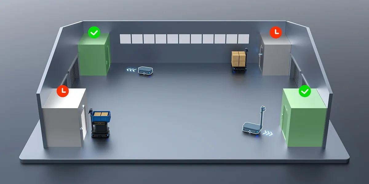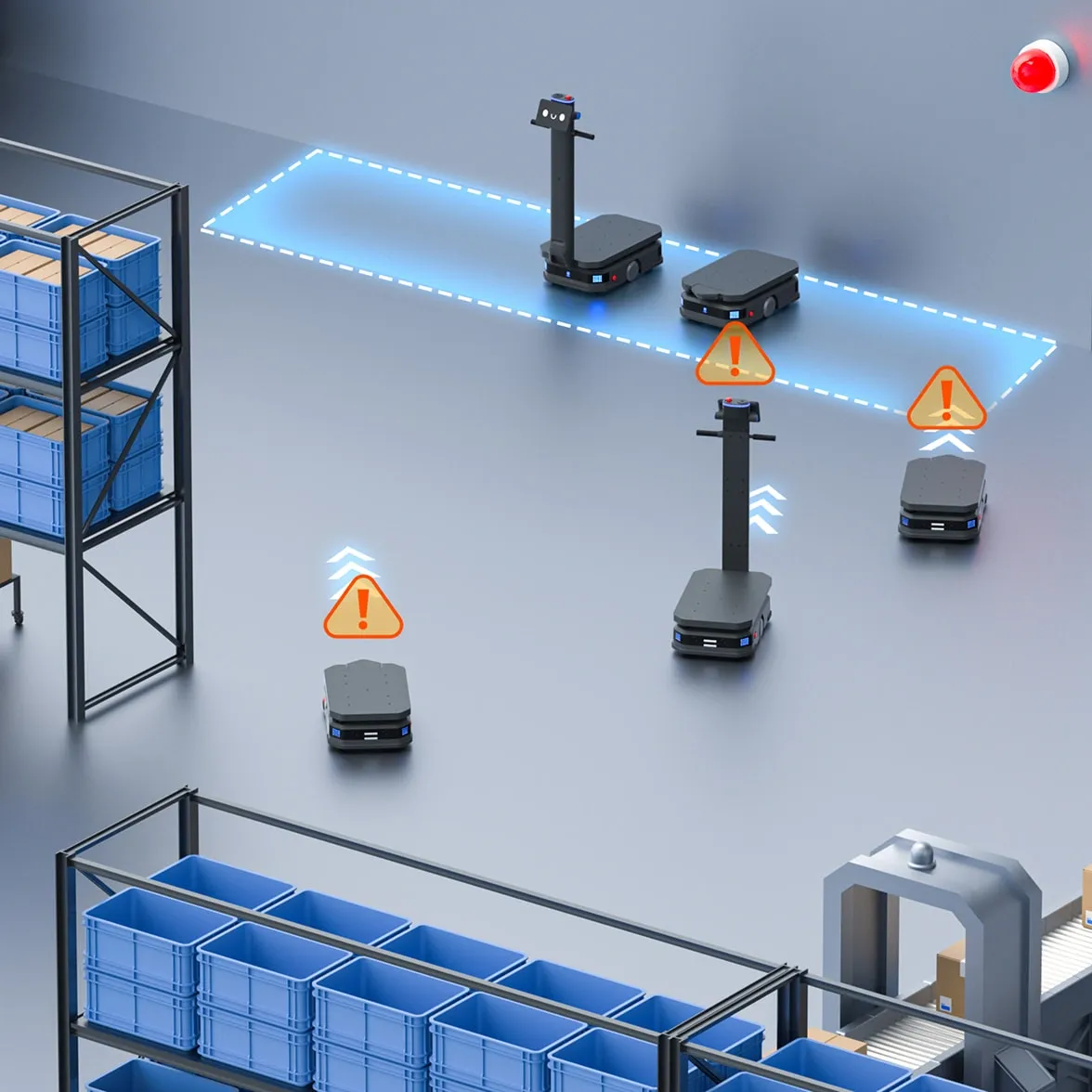 Yol genişliği ve robotların anlık yük boyutlarına göre sistem, tek şeritli veya çift şeritli trafik modlarını akıllıca belirler. Rota stratejilerini dinamik olarak ayarlayarak alan kullanımını en üst düzeye çıkarır ve dar alanlarda çoklu robot koordinasyon verimliliğini artırır.