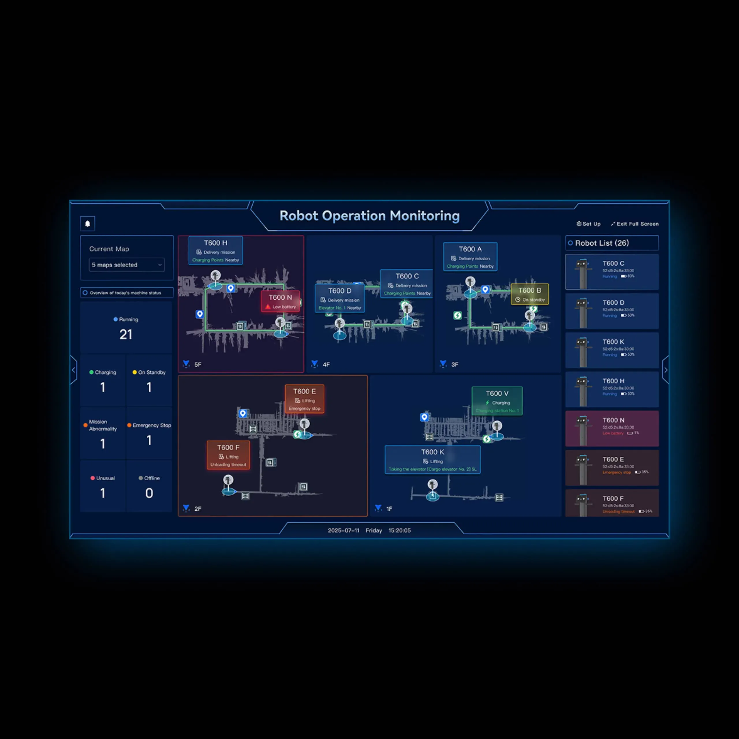 PUDU T600, büyük yüklerin taşınması için tasarlanmış ağır hizmet tipi bir endüstriyel teslimat robotudur. Dayanıklı bir mobil şasi üzerine inşa edilmiştir ve kullanıcı dostu bir dokunmatik ekran ile tutma koluna sahiptir. Özellikler: Dahili ekranı sayesinde merkezi bir kontrol sistemine gerek kalmadan doğrudan çalıştırılabilir. Güç destek anahtarı, hızlı erişim düğmeleri ve ön gösterge ışıkları sayesinde kolay ve verimli kullanım sağlar.